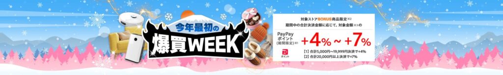 【2】合計20,000円以上決済で+7% - PayPayポイント付与上限:3,000円相当